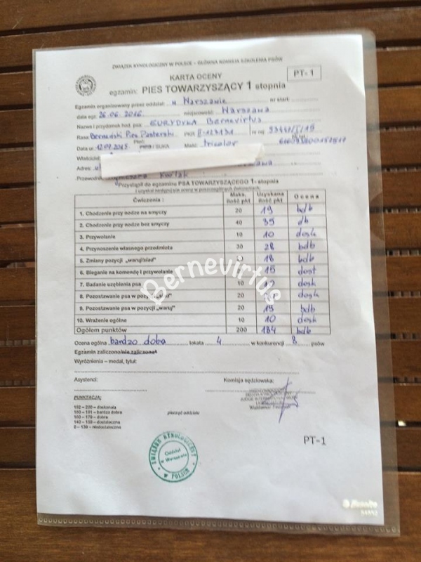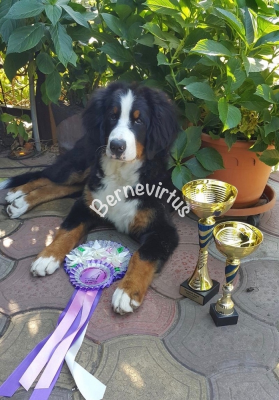 EUNOMIA Bernevirtus (suczka z naszej hodowli z miotu E) na swojej pierwszej wystawie w Nitra na Słowacji (11.2015) wygrała w swojej klasie z oceną wybitnie obiecującą. Na wystawie CACIB 02.04.2016 powtórzyła swój sukces: 1 miejsce w klasie. Jesteśmy dumni i ogromnie gratulujemy właścicielowi oraz wspaniałej handlerce.