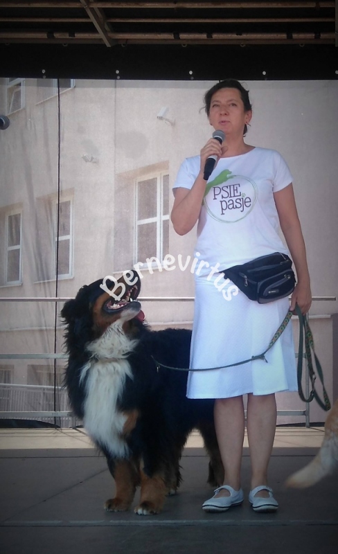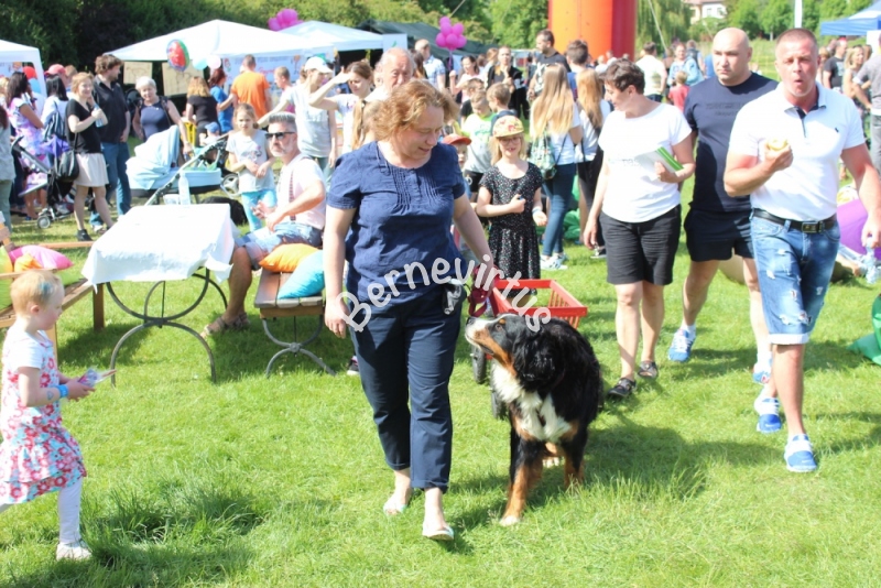 Włochowski Park Edukacyjny - zostaliśmy zaproszeni przez szkołę Psie Pasje by pokazać pracę berneńczyka: Orka (EURYDYKA Bernevirtus) zrobiła mały pokaz dog cartingu. Ciągnięcie wózeczka i jak przystało na prawdziwego psa serowarskiego/pociągowego poradziła sobie doskonale. Orka uczy się od babci Sabi i matki Efi - Orka pokazała, że i ten rodzaj